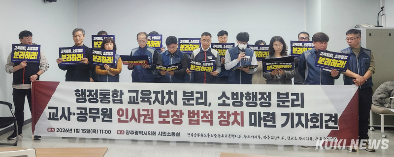 또, 민주주의의 도시 광주에서 가장 비민주적인 방식으로 행정통합 논의가 추진되고 있다며, 모든 공무원 노동자의 신분과 처우를 보장할 법적 장치를 마련하라고 요구했다.