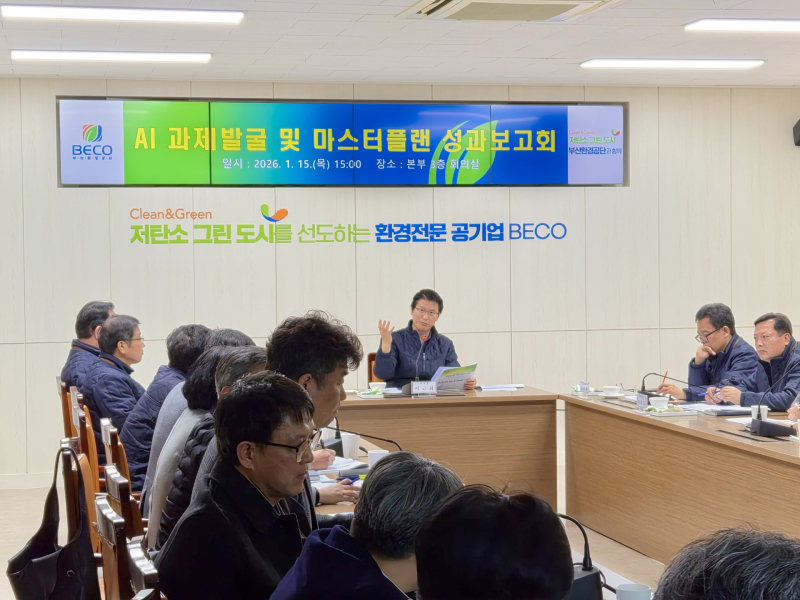 부산환경공단은 지난 15일 본부 대회의실에서 '2026년 경영혁신 AI 과제 발굴 및 마스터플랜 성과 보고회'를 열었다고 16일 밝혔다