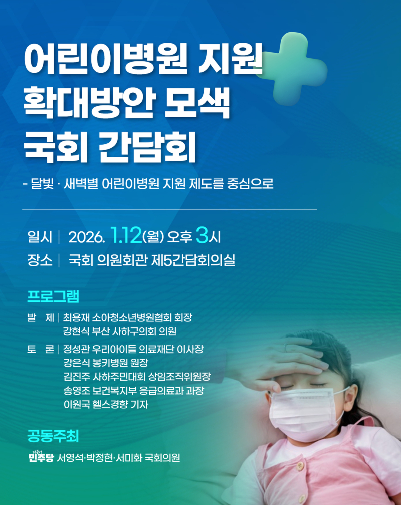 이어 “국정을 책임지는 정부가 아이들을 위한 충분한 의료서비스 공급 필요성을 설명하고 사회적 협의를 이끌어내는 역할을 해야 한다”며 “지원사업을 위한 법안 마련도 중요하지만, 소아의료 인력 부족이라는 근본적 문제를 해결할 대안이 함께 논의돼야 한다”고 강조했다.