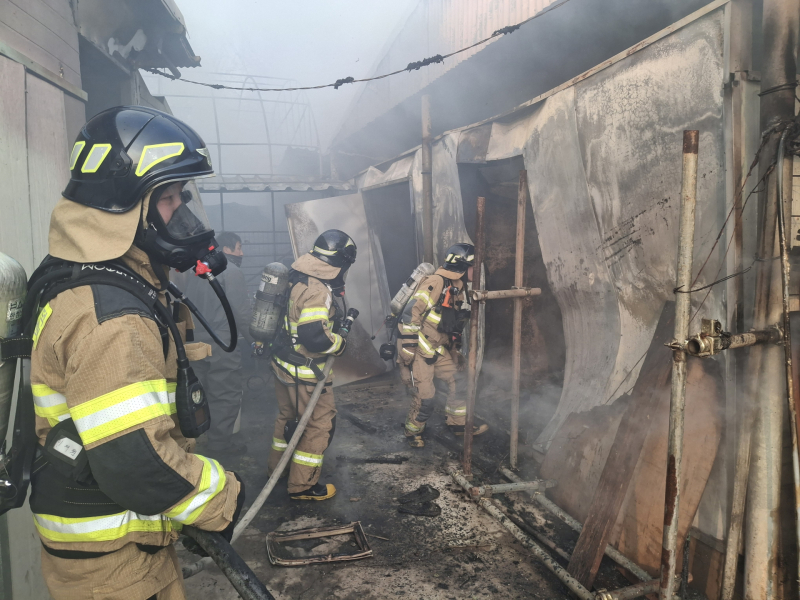 경북소방본부에 따르면 용접 작업 중 부주의로 추정되는 불이 나 소방 인력 37명과 장비 8대가 투입돼 발화 2시간여 만인 오전 10시 42분 진화했다.