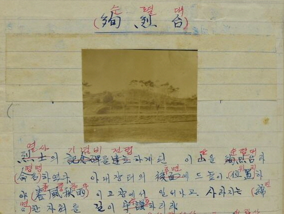구미산은 아우내만세운동이 일어난 장터를 바라볼 수 있는 바로 뒷산이다. 기념비 건립 경위를 기록한 『순국처녀 류관순 실기(實記)』에는 이 곳을 순국열사를 기리는 ‘순열대(殉烈台)’로 불렀다고 한다. 실기는 이렇게 적었다.