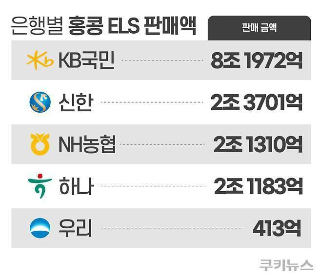 홍콩H지수를 기초자산으로 하는 ELS는 2021년 초 이후 판매 물량을 중심으로 지수 하락과 3년 만기 도래에 지난해 대규모 손실을 맞았다. 은행권이 판매한 홍콩 ELS 규모는 총 16조 3000억원에 달한다. 은행별로 △KB국민은행 8조1972억원 △신한은행 2조3701억원 △NH농협은행 2조1310억원 △하나은행 2조1183억원 △우리은행 413억원이다.