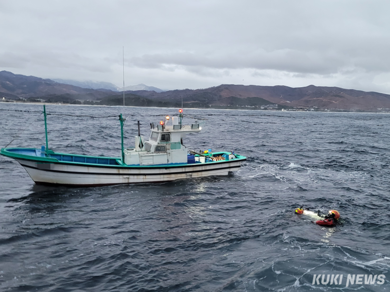 신고를 받은 동해해경은 묵호파출소 해상순찰팀과 경비함정 P-65정, 동해해양특수구조대를 현장으로 급파했다. 현장 이동 과정에서 동해어선안전조업국과의 정보 공유를 통해 승선원이 구명조끼를 착용한 상태로 안전에 이상이 없음을 확인했다.