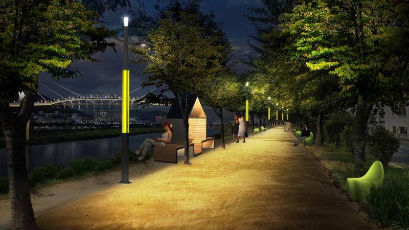 또 영대교에서부터 쌍벽루국민체육센터까지 둑마루길 800m구간에는 LED열주등 34개 경관조명 개선을 통해 기존산책로가 감성공간으로 탈바꿈하게 된다. 이를 통해 산책로 이용하는 시민들에게 새로운 볼거리와 함께 보다 쾌적한 보행환경을 제공할 것으로 기대한다.