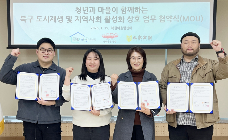 김은윤 북구 도시재생지원센터장은 “이번 협약을 통해 청년과 주민이 함께 지역 문제를 고민하고 해결하는 과정을 도시재생 현장에서 실천해 나가며, 사람 중심의 도시재생이 정착될 수 있도록 적극 지원하겠다”고 밝혔다.