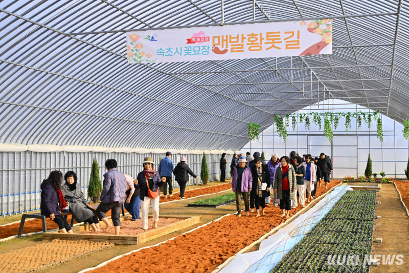 그러나 야외 맨발 걷기 길의 특성상 겨울철에는 안전 우려가 있어 임시 휴장을 해 이용객들이 아쉬움의 목소리가 이어졌다. 이에 속초시는 지난해 12월 11일, 노학동 꽃묘장 내 비닐하우스를 활용한 맨발 황톳길을 새롭게 개장했다.
