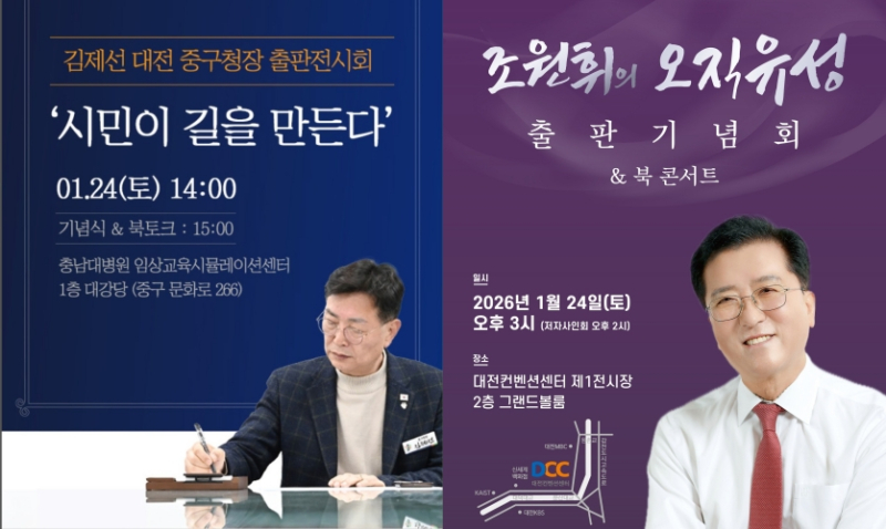 먼저 현직인 김제선 대전 중구청장은 오는 24일 오후 2시 충남대병원 임상교육시뮬레이션센터에서 ‘시민이 길을 만든다’ 출판기념회를 개최한다.