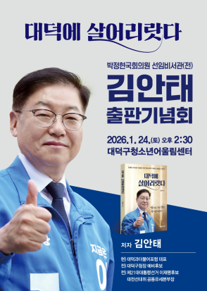 대덕구청장 선거를 준비하고 있는 김안태 전 박정현의원 선임비서관도 24일 오후 2시 30분 대덕구청소년어울림센터에서 '대덕에 살어리랏다' 출판기념회를 개최한다.