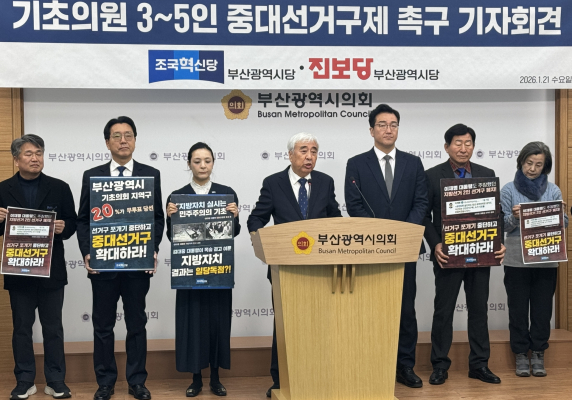 조국혁신당 부산시당과 진보당 부산시당은 21일 "기초의원 2인 선거구를 폐지하고 실질적인 3∼5인 중대선거구제를 즉각 도입해야 한다"고 촉구했다.
