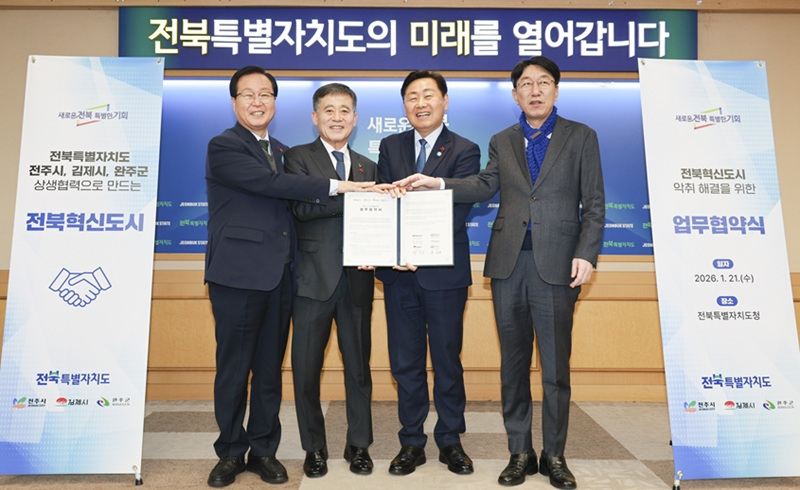 전북특별자치도와 3개 시·군이 행정구역의 경계를 뛰어넘어 전북 혁신도시의 악취 문제 해결을 위해 힘을 합쳤다.