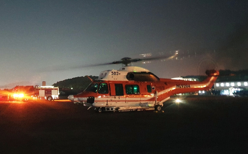 이번 진화에는 야간 비행이 가능한 수리온(KUH-1) 헬기가 처음으로 야간 산불현장에 투입됐다.