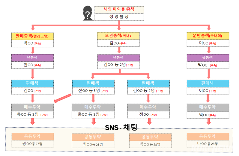 또 수사망을 피하기 위해 국내에서는 소분·재포장해 판매하고, 가상 자산으로 마약 대금을 주고받는 수범을 사용한 것으로 확인됐다.