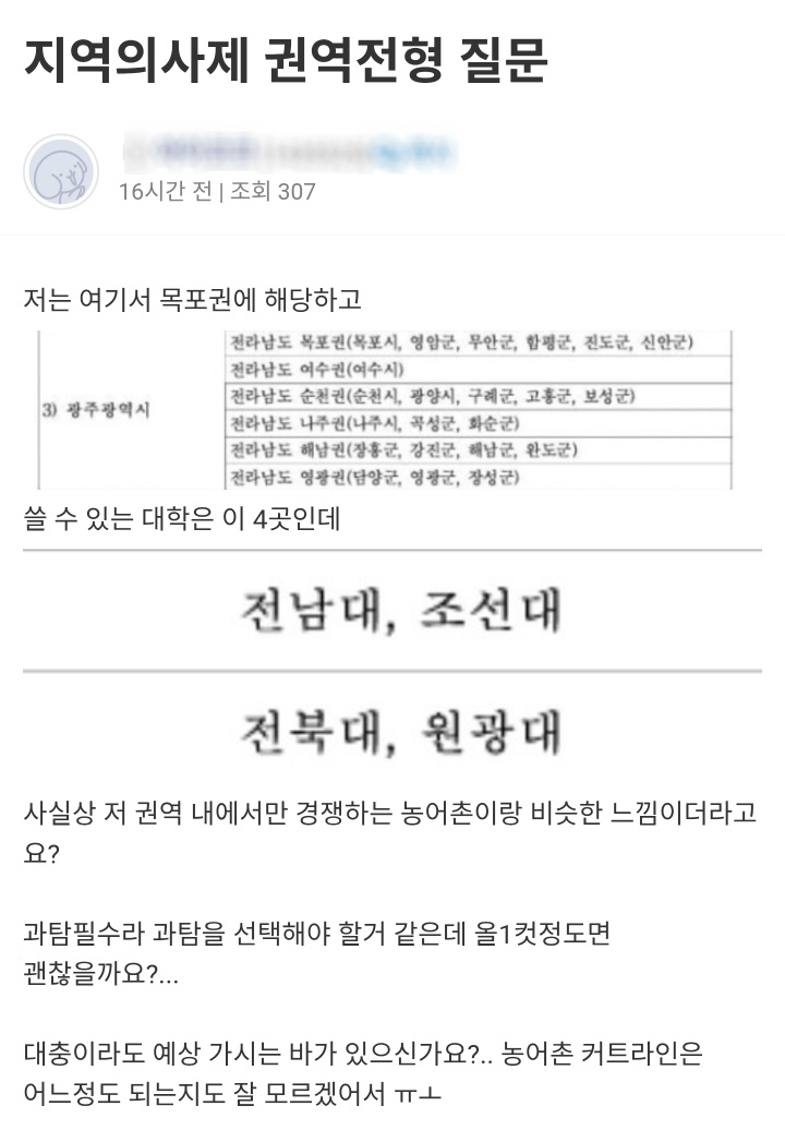 한 학생은 “제가 거주하는 지역에서는 4곳의 대학을 지원할 수 있다”며 “일정 권역 안에서만 경쟁하는 농어촌 인재 전형과 유사한 구조인 만큼, 수능 성적 커트라인이 어느 정도 형성될지 궁금하다”고 말했다.