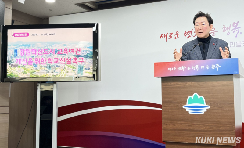 원강수 원주시장은 22일 시청 브리핑룸에서 열린 현안 브리핑을 통해 ‘혁신도시 교육여건 개선을 위한 학교 신설’을 촉구했다.