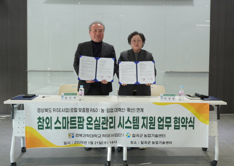 경북과학대 라이즈사업단은 스마트팜 기획과 장비 설치, 기술 자문, 성과 분석을 담당하고, 칠곡군 농업기술센터는 대상 농가 선정, 행정 지원, 현장 교육을 맡는다.