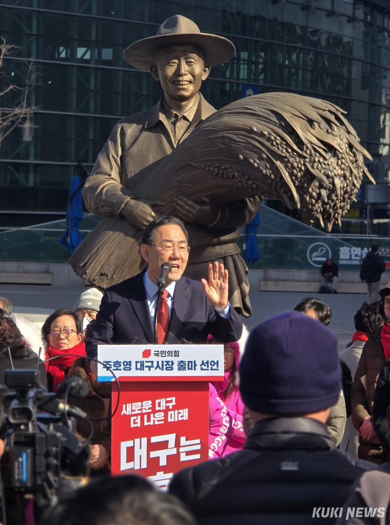 주 부의장은 이날 오전 동대구역 박정희광장에서 대구시장 출마를 공식 선언하며 “대한민국 산업화와 근대화의 상징인 박정희 대통령의 길 위에서 대구를 다시 일으켜 세우겠다”고 밝혔다.