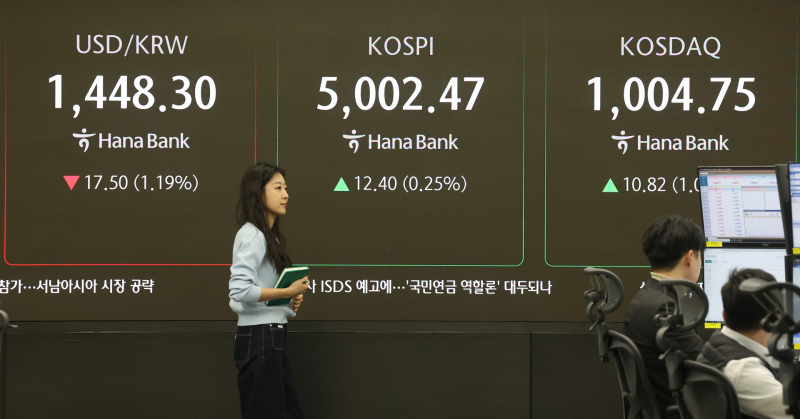 26일 한국거래소에 따르면 코스피 지수는 전 거래일 대비 0.05% 오른 4992.78에 장을 진행하고 있다. 코스피는 지난 22일 사상 처음으로 오천피 돌파에 성공한 이후 등락을 거듭하면서 안착을 시도하고 있다.
