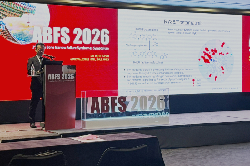 쿠와나 교수는 “기존 치료제들이 주로 혈소판 생성을 촉진하는 것과 달리 포스타마티닙은 대식세포 내 신호전달에 관여하는 Syk를 억제해 혈소판 파괴 경로를 차단한다”며 “면역세포의 한 종류인 B세포의 자가항체 생성 신호에도 영향을 줄 수 있는 독특한 작용기전을 가진다”고 설명했다.