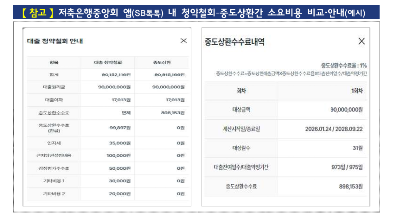 금감원은 우선 청약철회 신청이 등록되면 전산상 임의로 중도상환 처리가 이뤄지지 않도록 업무 처리 주의사항 안내 팝업 기능을 신설한다. 대출 일부를 상환한 이후 청약철회를 신청한 경우에도 중도상환수수료 반환과 청약철회가 동시에 진행되도록 시스템을 개선한다. 또 대출 고객이 청약철회 가능 기간 내 상환이나 철회를 선택할 때 두 제도의 장단점과 구체적인 비용 차이를 비교해 안내하도록 했다. 관련 정보는 저축은행 뱅킹 앱에서도 확인할 수 있다.