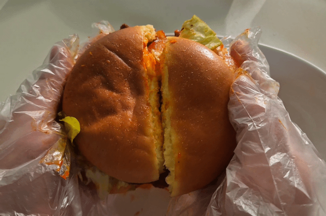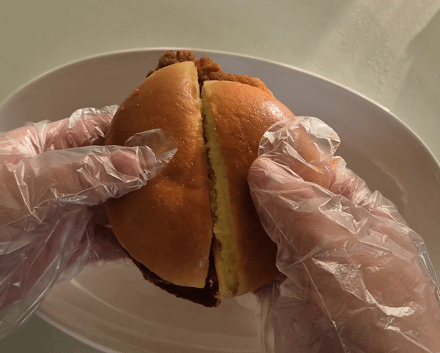 실제 첫인상은 단번에 시선을 끌 만큼 강렬했다. 포장지를 열자마자 눈에 들어온 것은 치킨 패티 위에 듬뿍 얹힌 마라 소스였다. 빨갛다 못해 검붉어 보일 정도의 색감에 ‘과연 감당할 수 있을까’라는 생각마저 들었다.