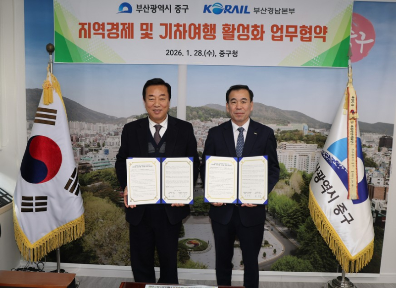 부산 중구는 28일 코레일 부산경남본부와 지역경제 및 기차여행 활성화 업무협약을 체결했다고 밝혔다.