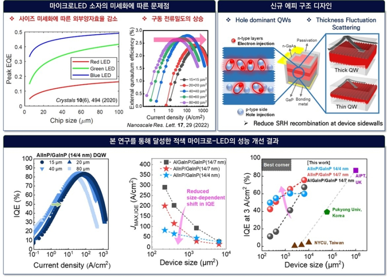 그 결과 픽셀이 미세해져도 에너지 손실 없이 밝은 빛을 내는 고효율 적색 마이크로LED 구현이 가능해졌다.