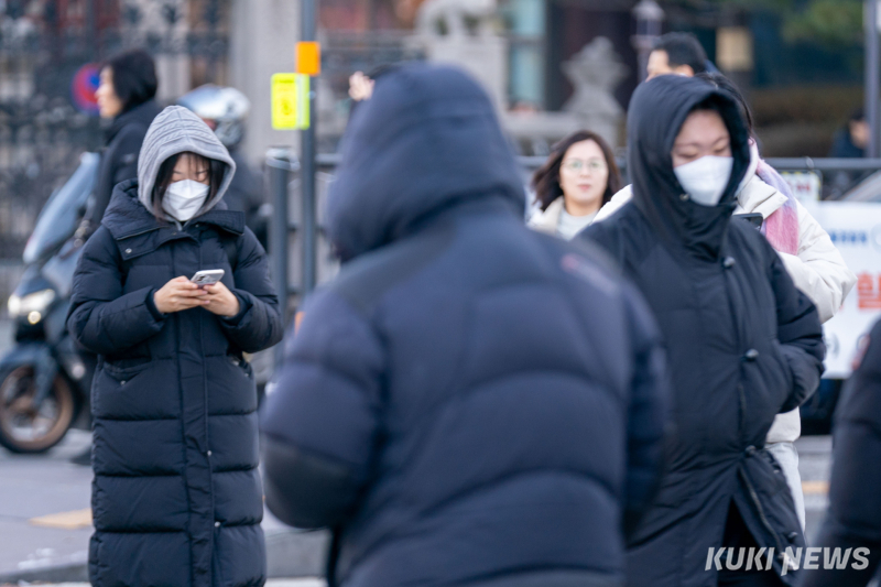 낮 최고기온은 서울 -2도, 인천 -2도, 수원 -2도, 춘천 -1도, 강릉 3도, 청주 0도, 대전 2도, 전주 2도, 광주 4도, 대구 4도, 부산 7도, 제주 7도다.