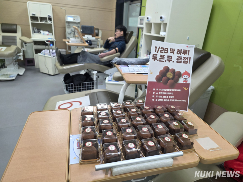 대한적십자사 강원지사는 겨울철 혈액 수급의 안정화를 위해 29일 하루 동안 강원지역 6곳의 헌혈의 집에서 전혈과 혈소판 헌혈자를 대상으로 두쫀쿠를 제공하는 이벤트를 개최했다.
