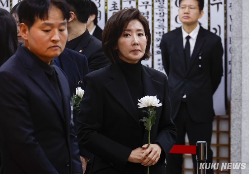 나경원 국민의힘 의원이 29일 서울 종로구 서울대학교병원 장례식장에 마련된 고 이해찬 전 국무총리의 빈소에 조문했다.