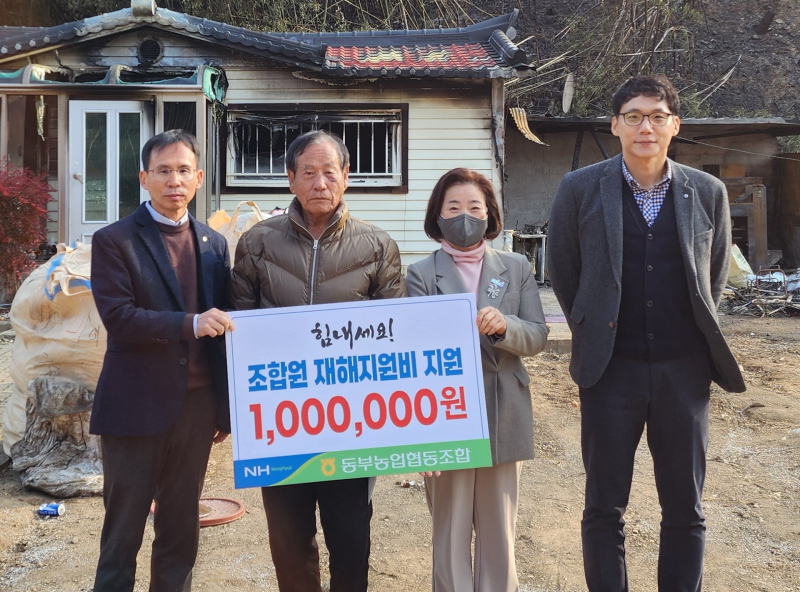 주현숙 조합장은 “화재로 재산의 피해뿐만 아니라 마음의 상처가 크다”며 “조합원님이 하루빨리 일상으로 돌아오길 바라며, 동부농협은 조합원의 회복을 위해 최선을 다하겠다”고 밝혔다.