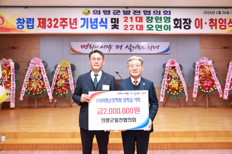 또한 의령군발전협의회는 지역 인재 양성과 교육 발전을 위해 장학금 200만원을 기탁하며 나눔의 뜻을 실천했다.