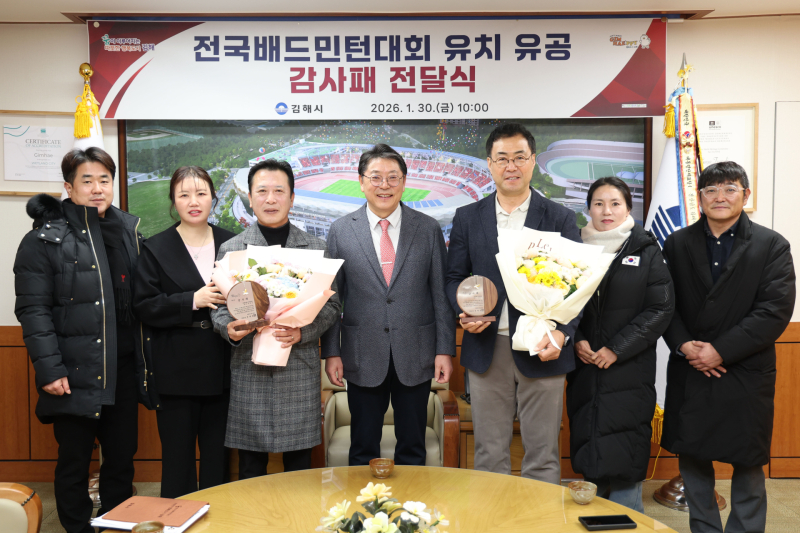 김해시는 30일 시장 접견실에서 ‘제42회 대한배드민턴협회장기 생활체육 전국배드민턴대회’ 유치 유공자에게 감사패를 전달했다.