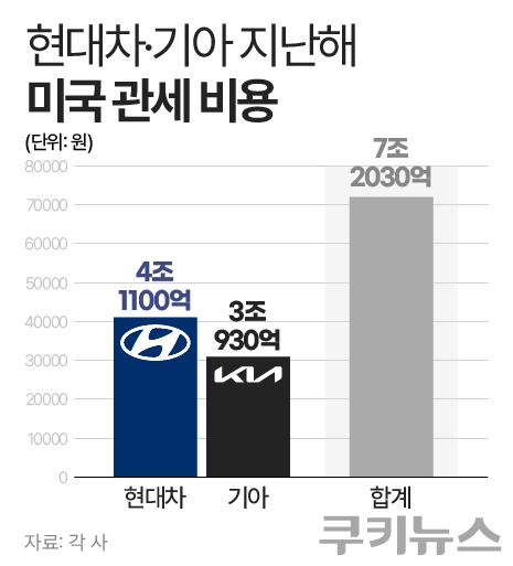 현대차와 기아의 지난해 합산 영업이익은 20조5060억원으로, 전년 대비 23.6% 급감했다. 대미 관세 부담이 실적에 직접적인 영향을 미친 것으로 풀이된다. 특히 양사의 합산 관세 부담은 지난 한 해만 7조원에 달하는 것으로 추산됐다. 현대차는 4조1000억원, 기아는 3조930억원의 관세 비용을 부담했다.