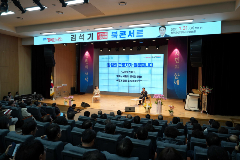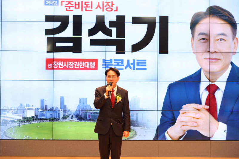 김석기 전 창원시장 권한대행은 지난 31일 창원문성대학교 컨벤션홀에서 출판기념 북콘서트를 열고 1200여 명의 시민과 각계 인사들과 함께 창원의 현재와 미래, 행정의 역할을 주제로 소통했다.