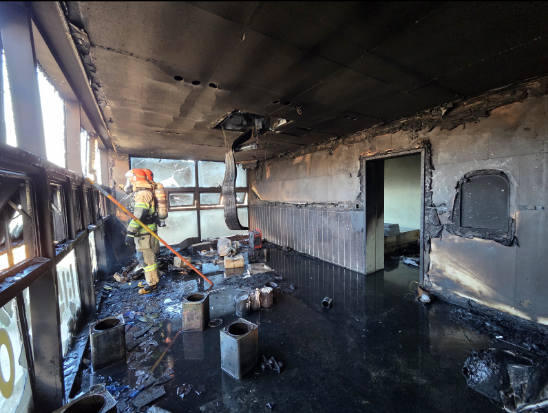 현장 도착 당시 건물 내부에 검은 연기가 퍼진 상태였으며, 소방대는 40㎜ 호스를 연장해 화재 진압에 나섰다.