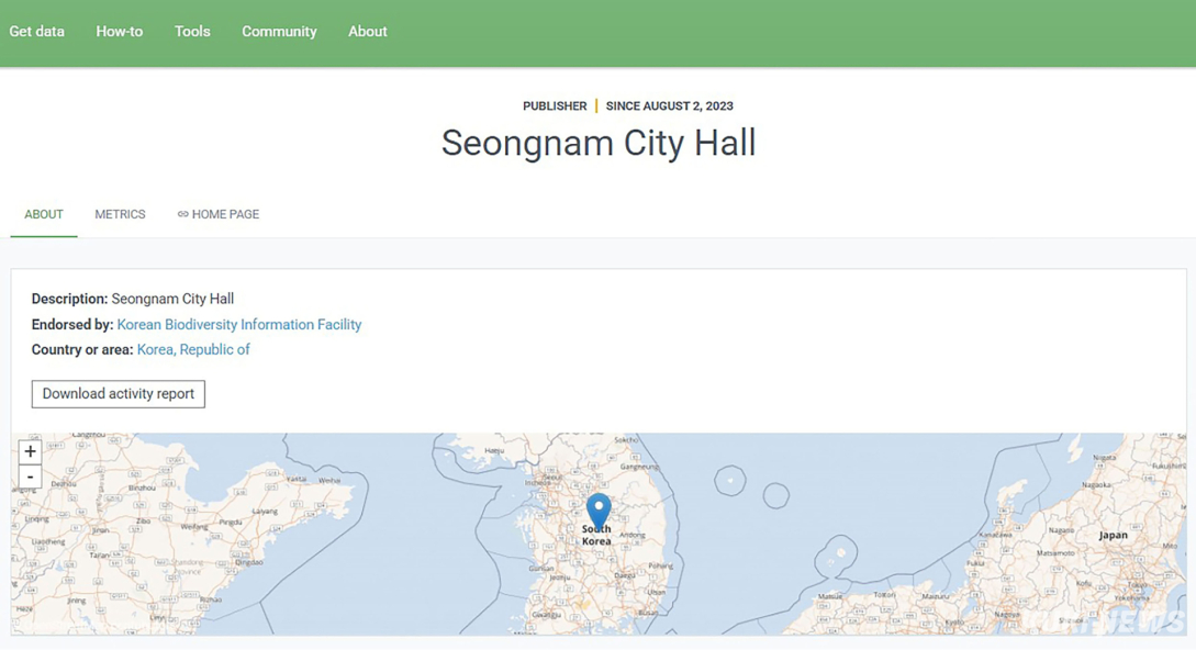 경기 성남시는 세계생물다양성정보기구(GBIF)에 등록한 지역 자연자원 자료가 3년 누적 7만3714건에 달한다고 2일 밝혔다.