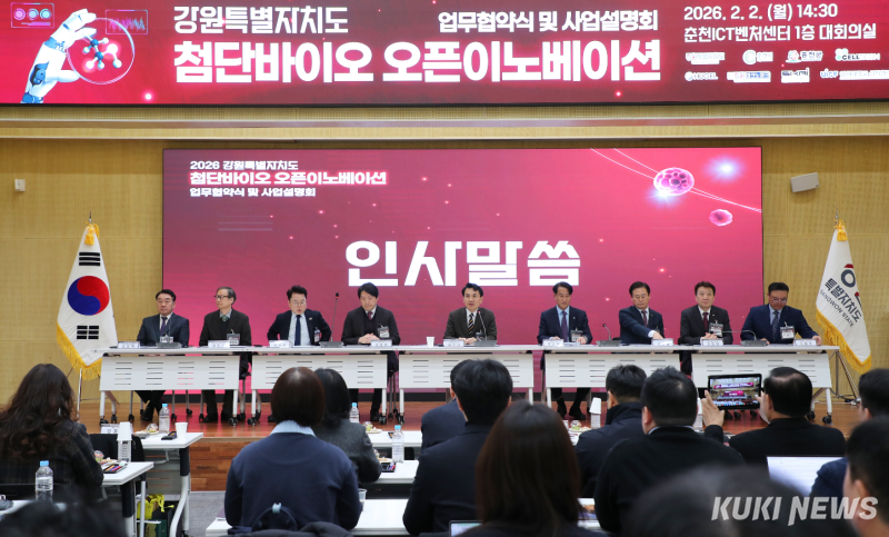 강원특별자치도는 2일 춘천 ICT벤처센터에서 '강원 첨단바이오 오픈이노베이션 프로그램' 업무협약식과 사업설명회를 개최했다.