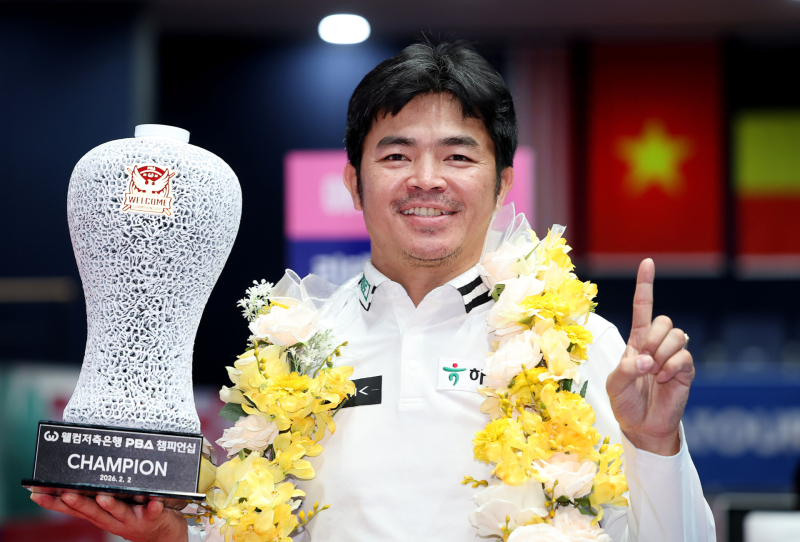 경기도 고양시 ‘고양 킨텍스 PBA 스타디움’에서 2일 막을 내린 프로당구 2025-26시즌 9차 투어 ‘웰컴저축은행 PBA-LPBA 챔피언십’ PBA 결승전에서 Q.응우옌은 다니엘 산체스(스페인·웰컴저축은행)를 상대로 풀세트 끝에 세트스코어 4:3(11:15, 8:15, 15:3, 15:9, 4:15, 15:2, 11:4)으로 제압하고 우승컵을 들어올렸다.