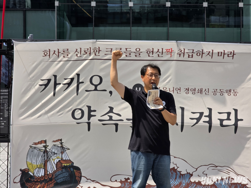 서승욱 카카오지회장은 “카카오가 진정으로 사회적 신뢰를 회복하고자 한다면 불투명한 매각이 아니라 함께 땀 흘려온 조합원들의 고용 안정을 위해 대책을 마련해야 한다”며 “우리의 요구가 관철될 때까지 모든 수단을 동원해 단호하게 대응할 것”이라고 밝혔다.