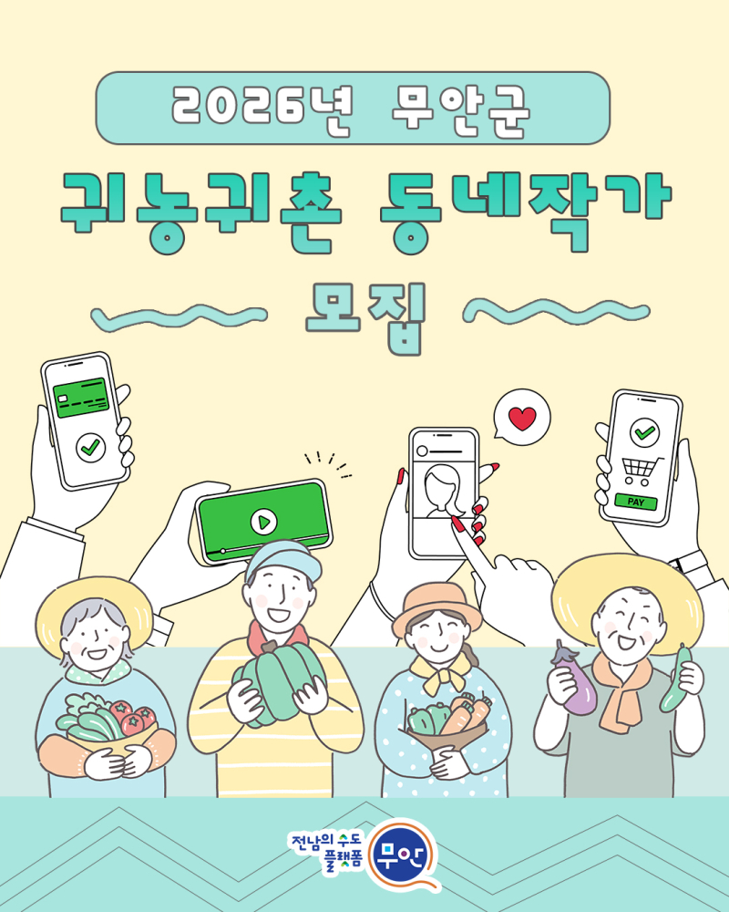 한승헌 인구정책과장은 “동네작가 사업은 주민이 직접 지역의 삶을 전달하는 신뢰도 높은 홍보 방식”이라며 “귀농·귀촌 정책과 무안의 매력을 자연스럽게 알릴 수 있는 계기가 될 것으로 기대한다”고 말했다.