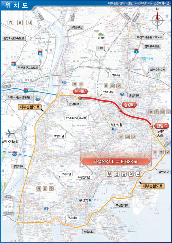 부산 내부 순환도로망의 마지막 고리인 만덕∼센텀 도시고속화도로(대심도)가 오는 10일 개통한다.