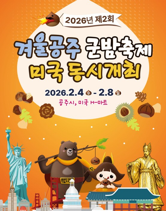 충남 공주시가 오는 4~8일까지 5일간 열리는 ‘군밤축제’를 미국 현지와 동시에 개최한다.