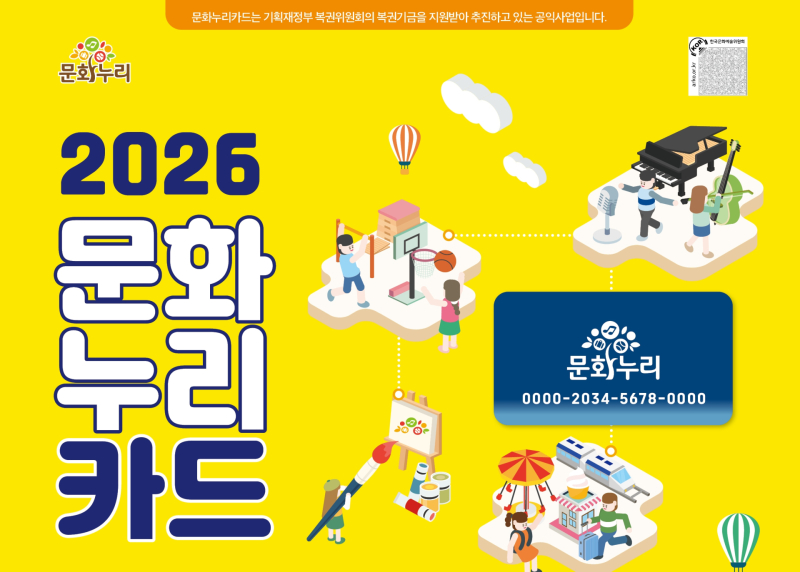 신청은 주소지 행정복지센터 방문, 문화누리카드 누리집, 또는 모바일 앱을 통해 가능하며, 카드는 발급일로부터 12월 31일까지 사용할 수 있다.