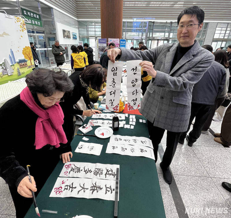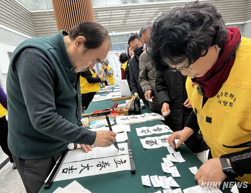 원주문화원(원장 이상현)은 이날 원주시청 1층 로비에서 ‘입춘첩 및 가훈 나눔 행사’를 진행했다.