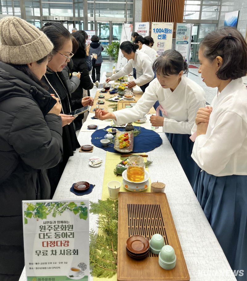 또 원주문화원 동아리 다정다감은 다도 시연을 통해 전통차와 다식을 시민들에게 선보였다.