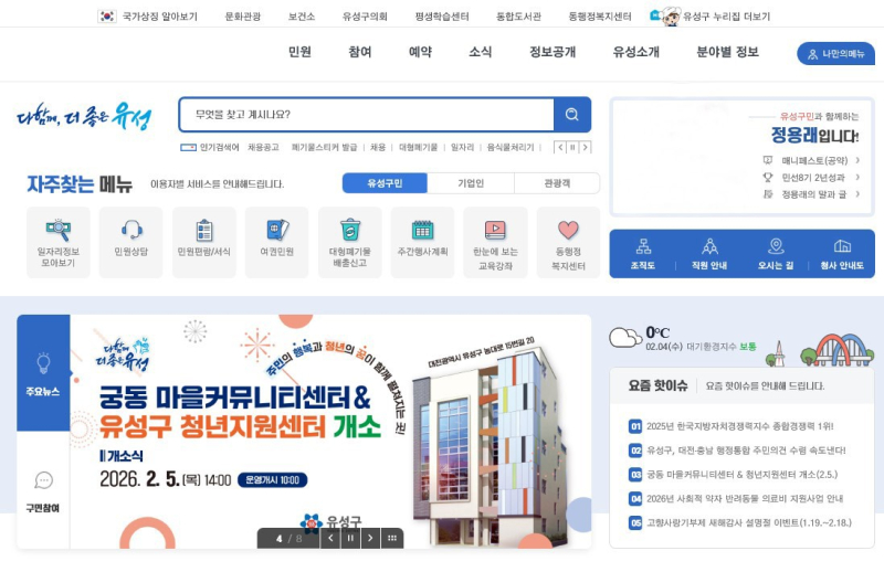 대전 유성구 홈페이지가 행정정보 제공과 소통 창구로 자리매김하고 있는 것으로 나타났다.