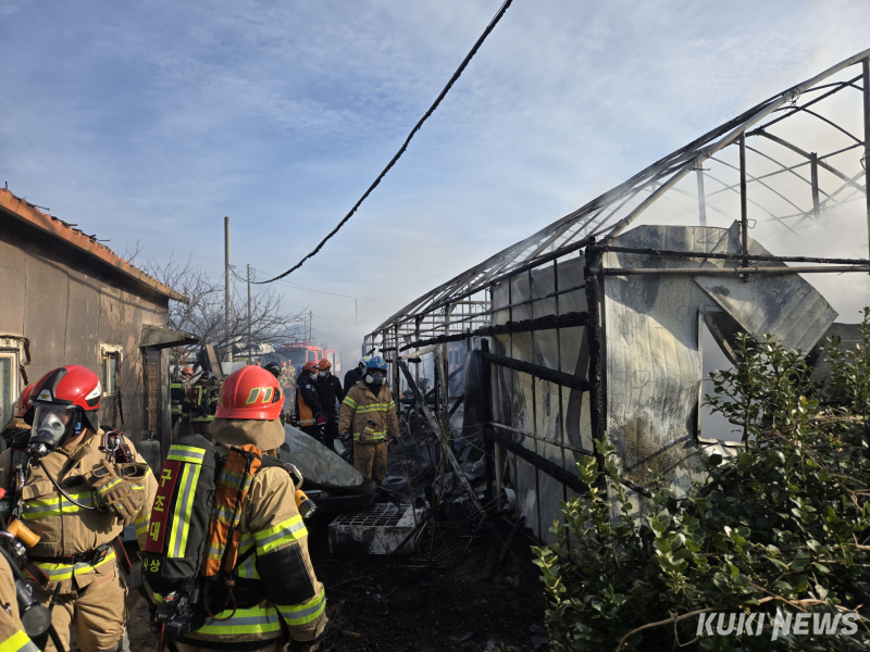 4일 오전 8시38분쯤 부산 강서구 강동동에 있는 한 비닐하우스 작업장에서 원인을 알수 없는 불이나 남성 1명이 숨졌다.