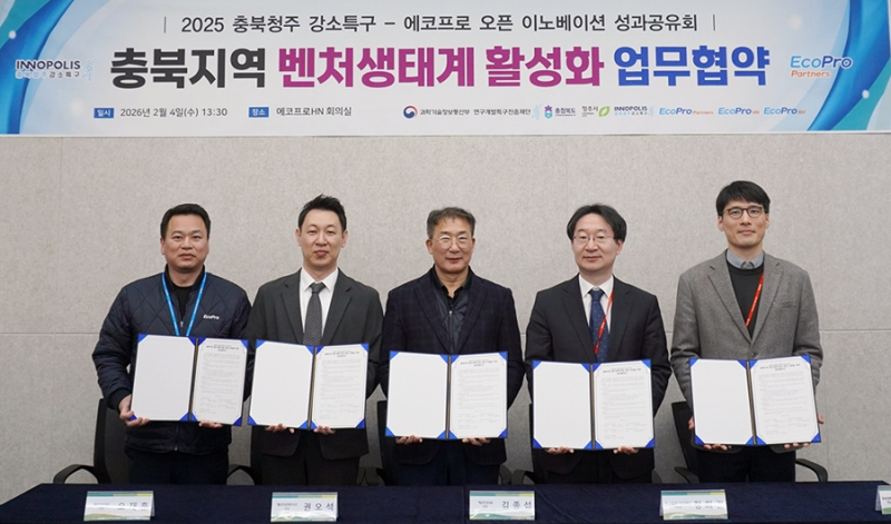 이와 함께 오픈이노베이션 추진 주체인 특구재단, 충북대, 에코프로에이치엔, 에코프로비엠, 에코프로파트너스는 지역 중소·벤처기업 성장을 위한 업무협약을 체결했다.