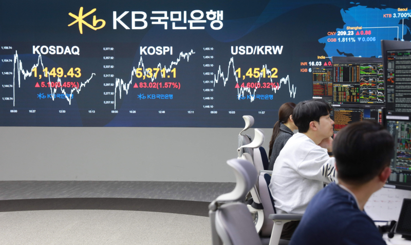 4일 한국거래소(KRX)에 따르면 코스피는 전 거래일 대비 83.02포인트(1.57%) 오른 5371.10에 거래를 마쳤다. 전일 6%대 급등에 이어 사흘 만에 500포인트 넘게 뛰며 종가 기준 최고치를 다시 썼다.