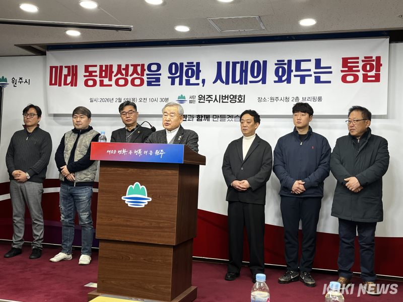 원주시번영회는 5일 원주시청 브리핑룸에서 '미래 동반성장을 위한, 시대의 회두는 통합' 기자회견을 통해 이 같은 의견을 발표했다.